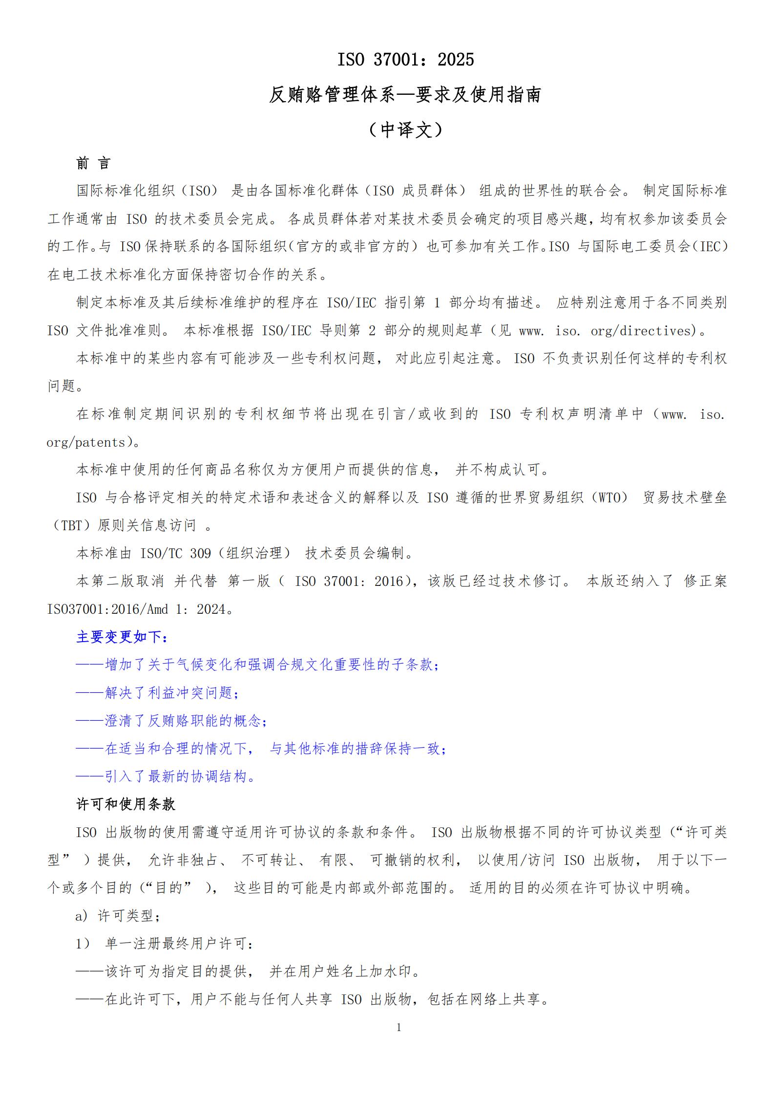 ISO 37001:2025 反贿赂管理体系 要求及使用指南(中译文)