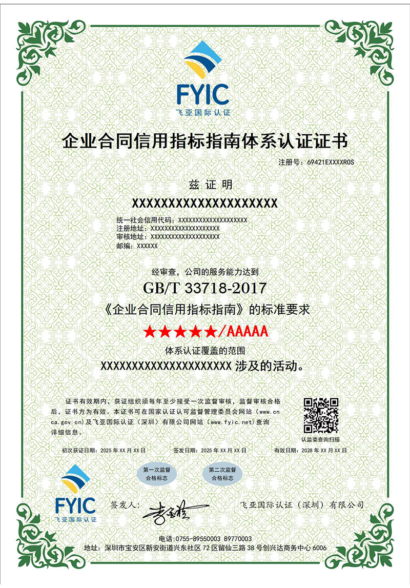 F057 企业合同信用指标指南体系认证